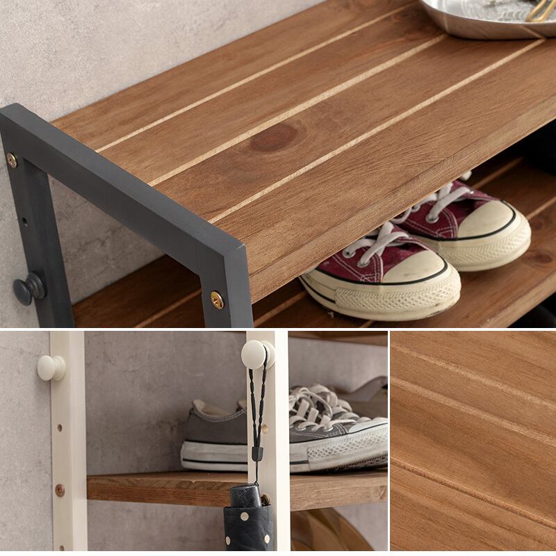 サンダルからブーツまで、靴の高さに合わせて棚の高さを組み換えできるシューズラック。